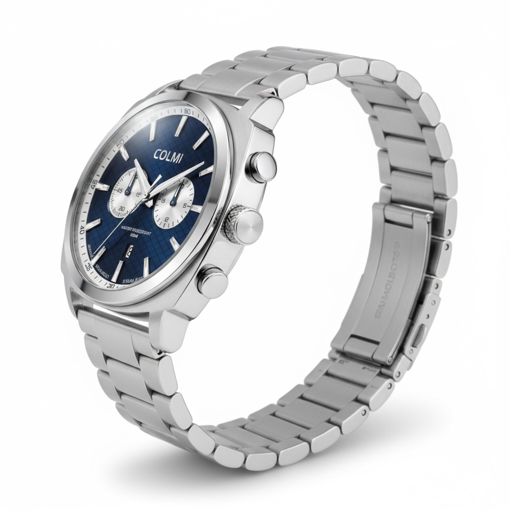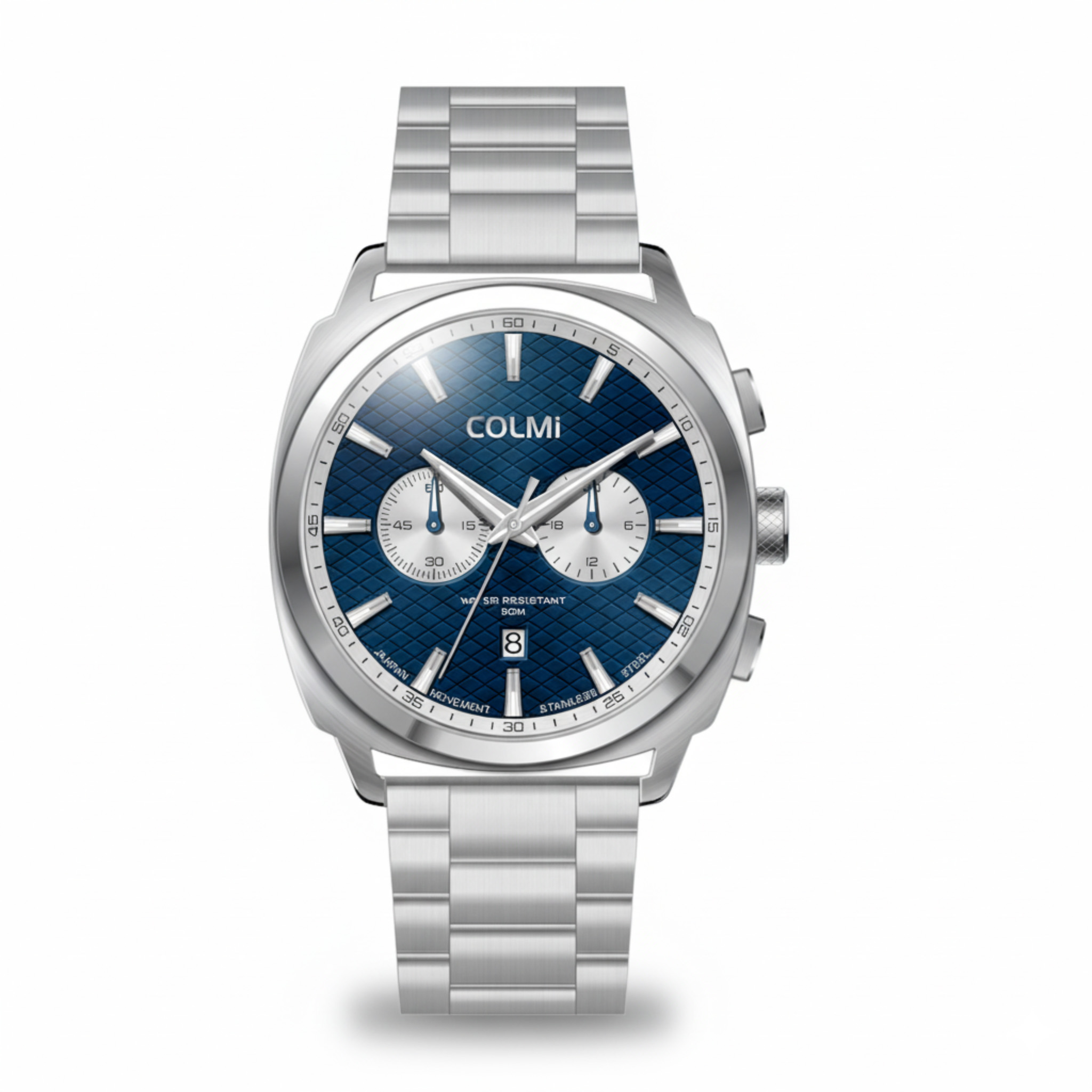 DialTextured navy blue with silver sub-dials & silver-tone indexes |